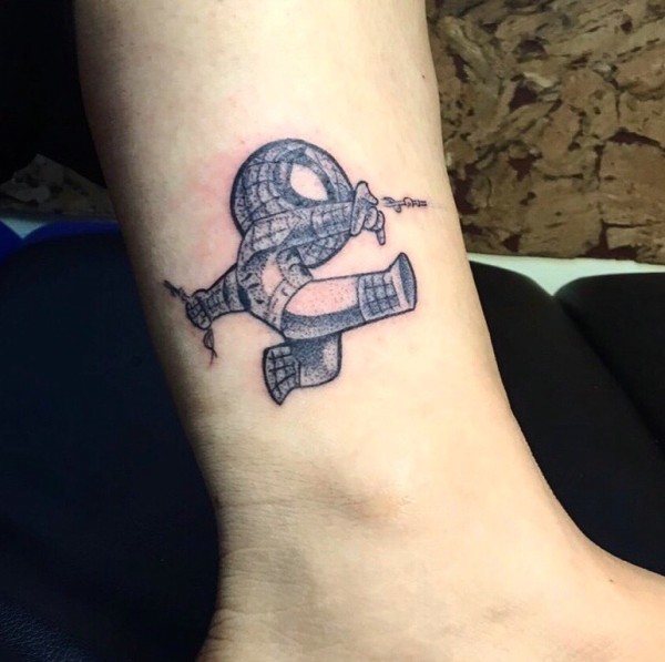 腿部可爱的小蜘蛛侠纹身刺青