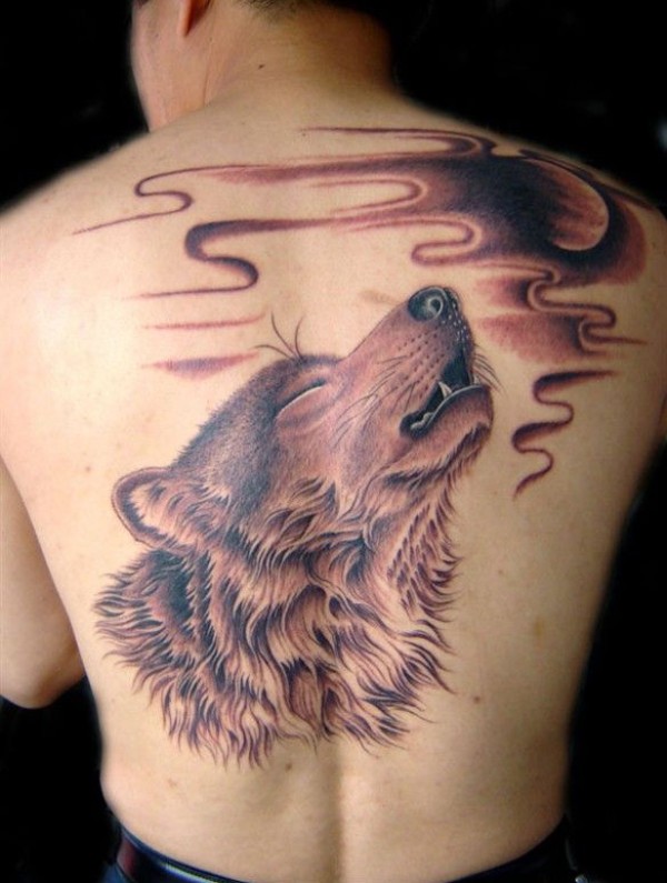 背部啸月狼纹身图片