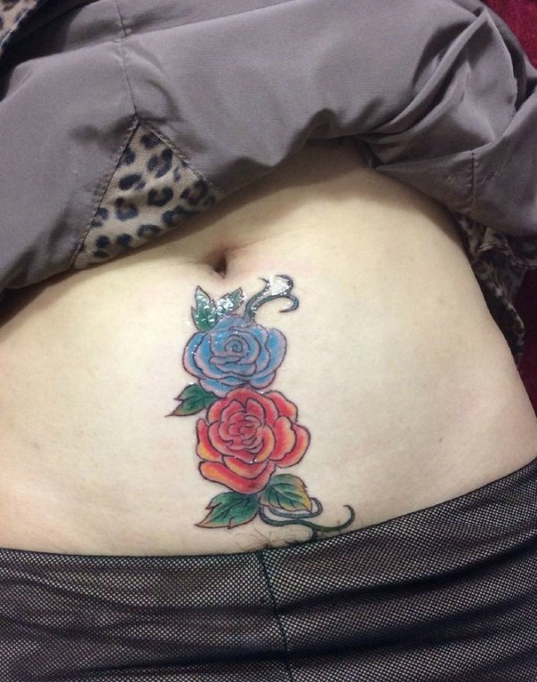 分享一款腰部时尚性感的蝶恋花纹身图案_腰部纹身图案大全_纹身图吧