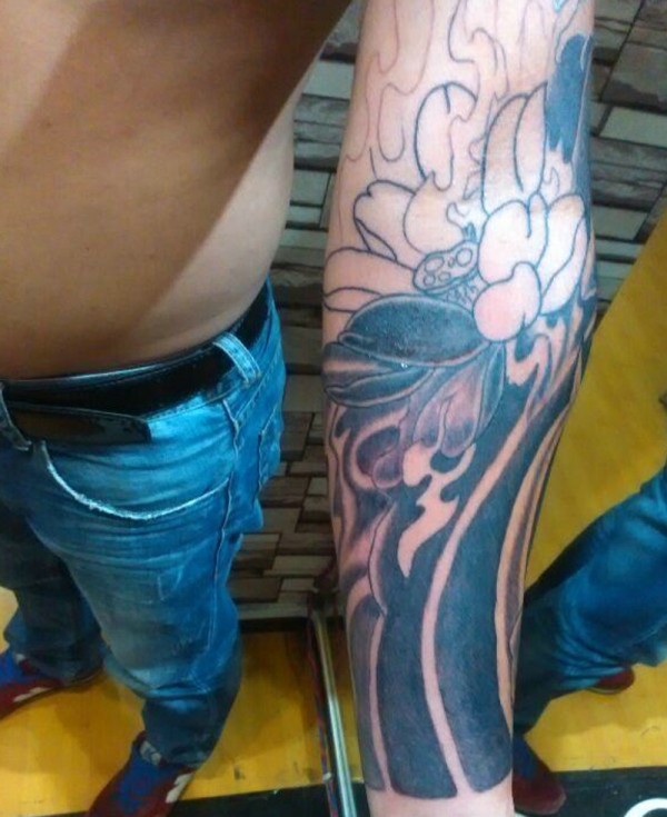 手臂莲花蛇纹身图案_臂部纹身图案大全_纹身图吧