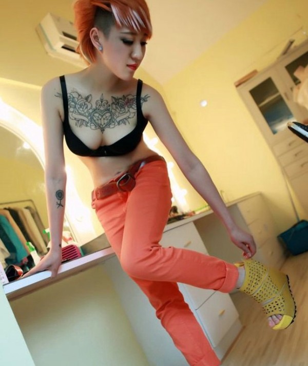 女性大花胸纹身_43张霸气漂亮的女性大花胸纹身图案作品