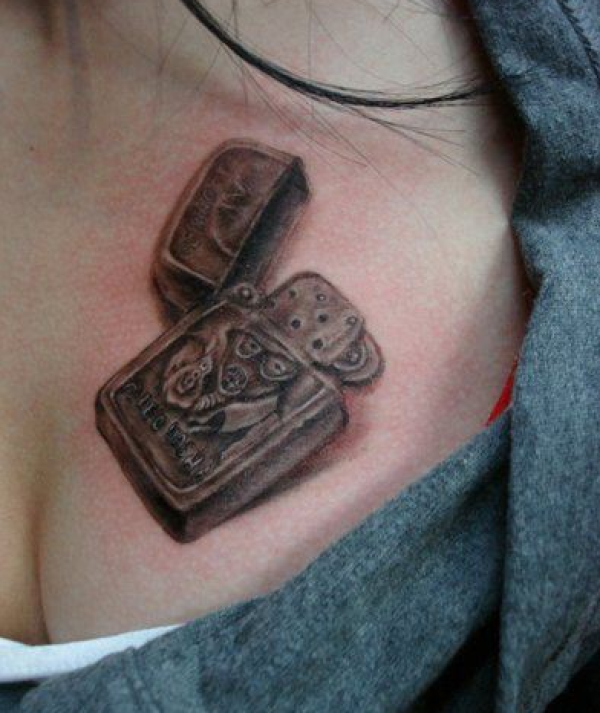 美女胸部zippo打火机纹身