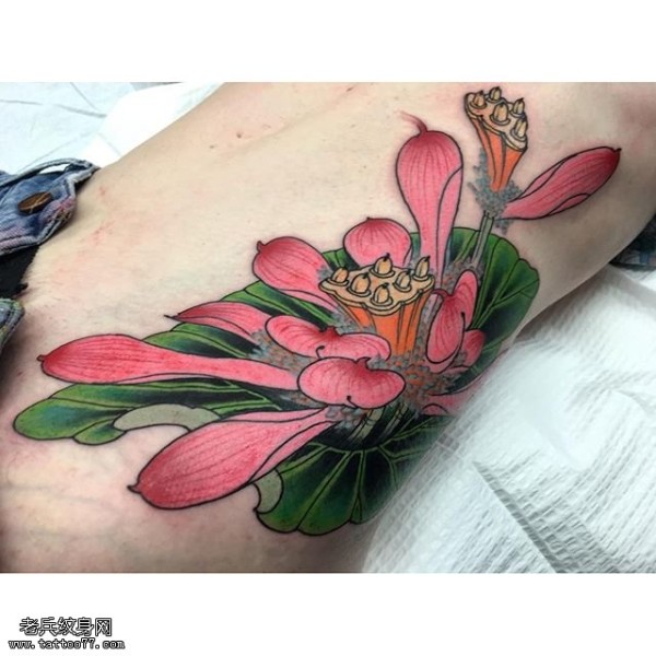 女性腰部莲花花纹刺青_腰部纹身图案大全_纹身图吧