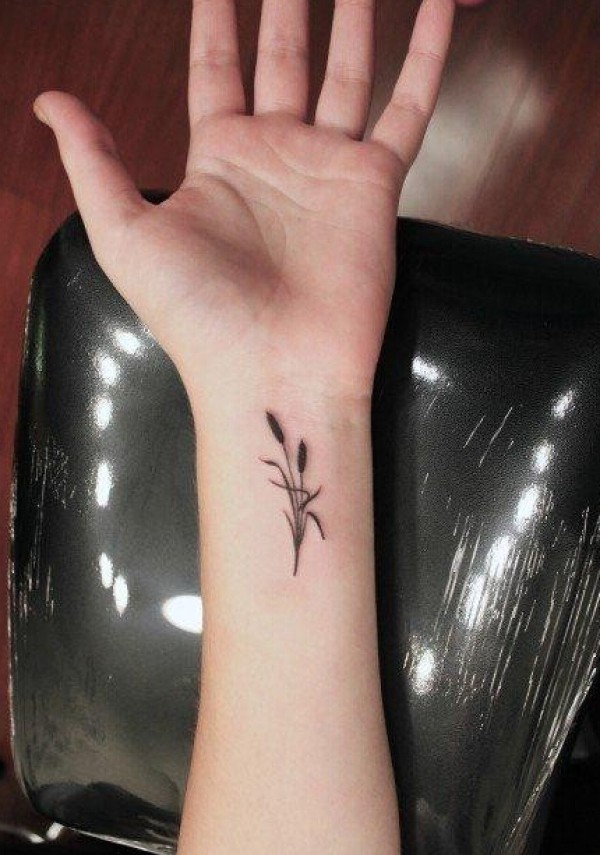女性手腕时尚小巧的芦苇纹身