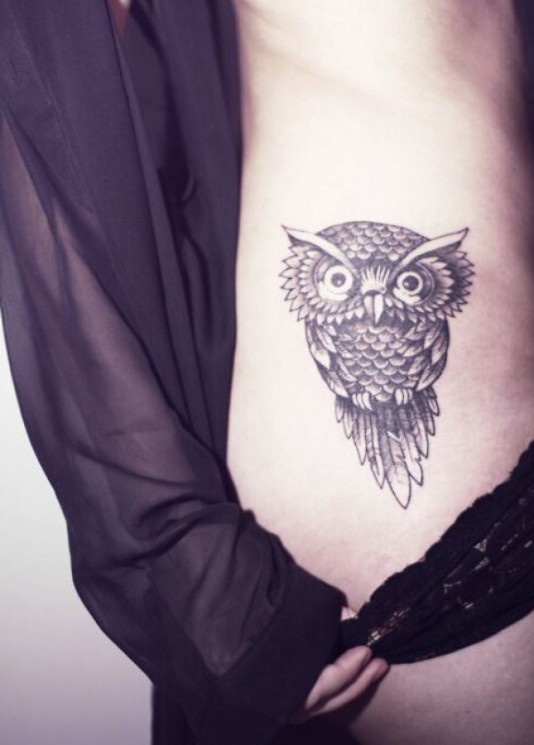 性感美女侧腰猫头鹰文身图案