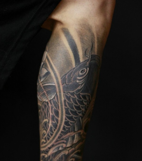 传统鲤鱼花小腿纹身_腿部纹身图案大全_纹身图吧