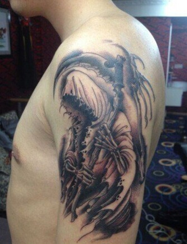 男士个性的大臂死神纹身