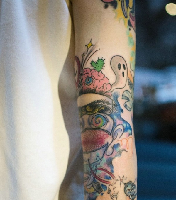 手臂一款彩色蘑菇纹身图案_臂部纹身图案大全_纹身图吧