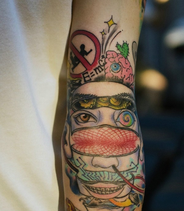 非常另类的彩色手臂图腾纹身