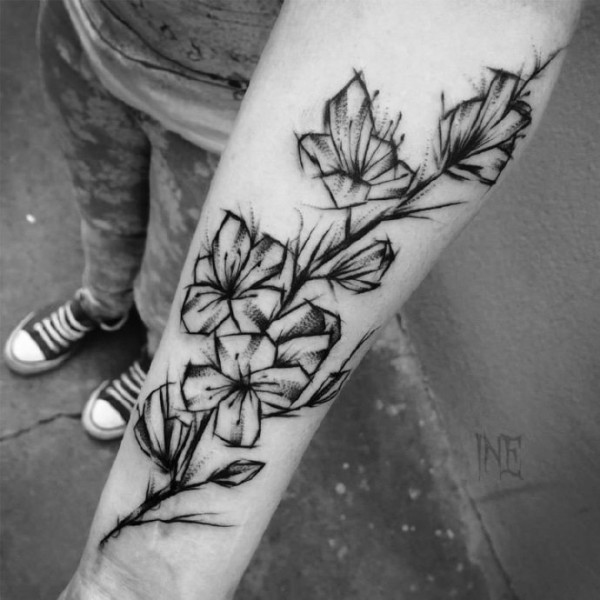 男人大臂黑白彼岸花骷髅_黑白纹身图案大全_纹身图吧