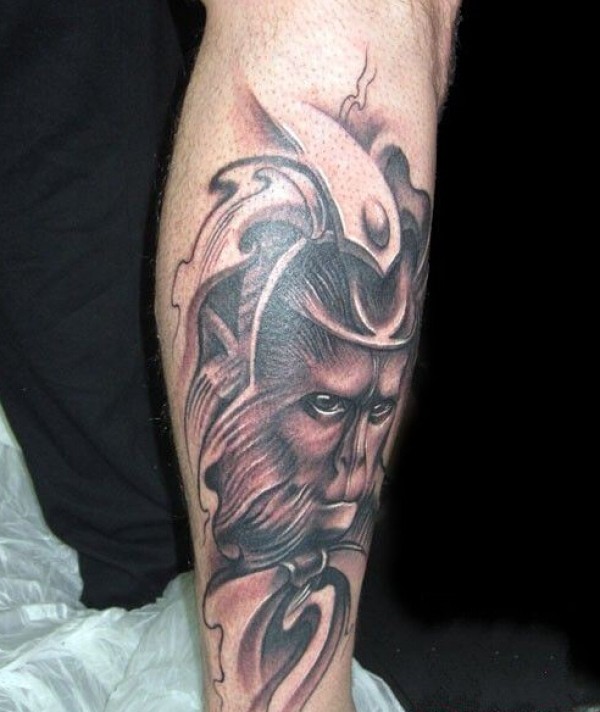 小腿叛逆的齐天大圣孙悟空纹身图案