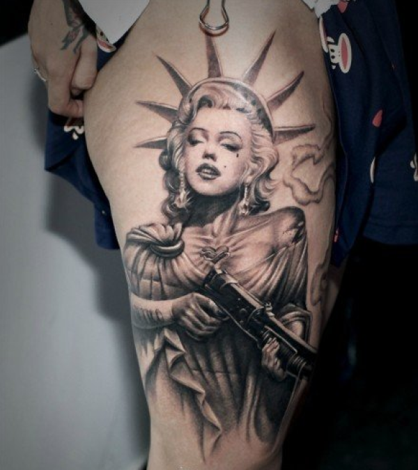 传统花腿纹身--18张传统风格的大花腿纹身图案作品