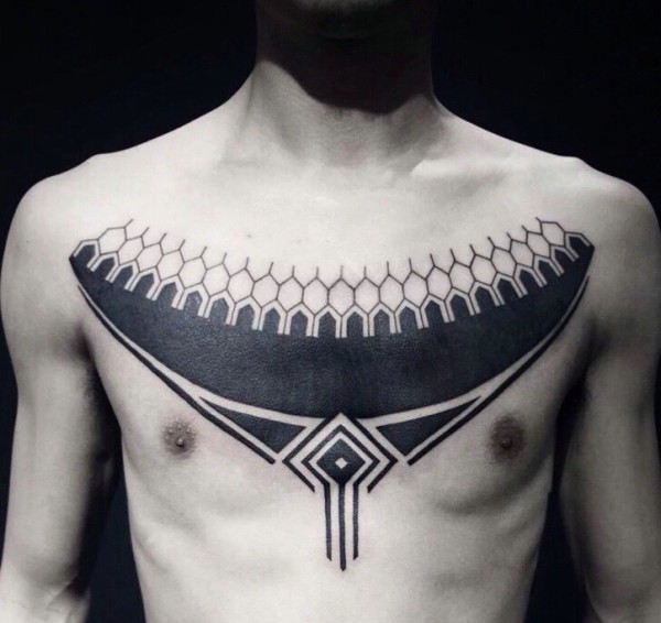 纹身图案胸部男 简洁大方的男生胸部纹身图案