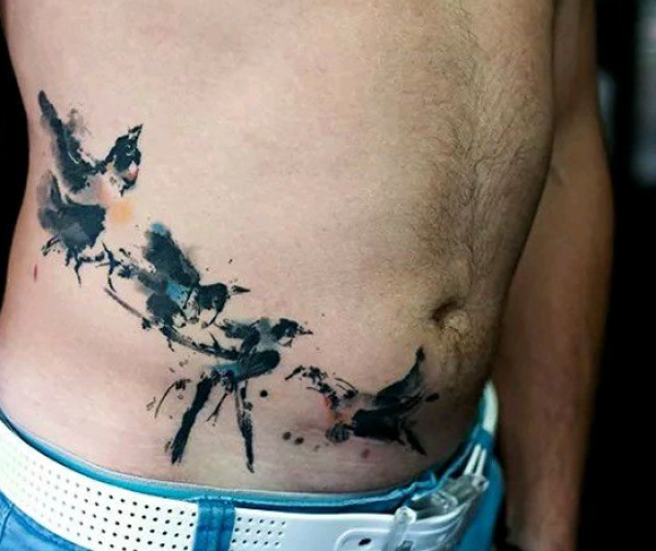 分享一款腰部时尚性感的蝶恋花纹身图案_腰部纹身图案大全_纹身图吧
