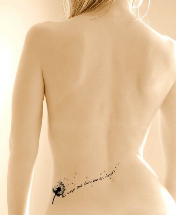 女生腰部漂亮的蒲公英纹身