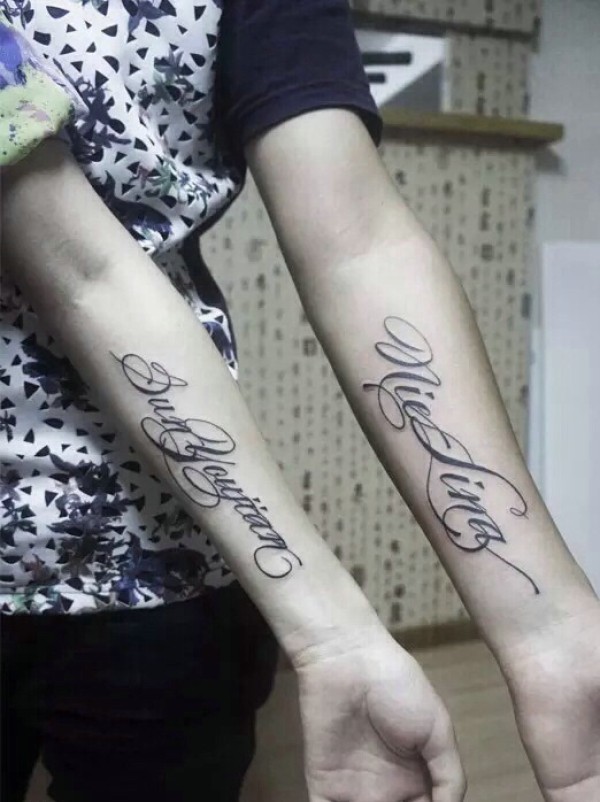 90后时尚情侣创意的英文纹身