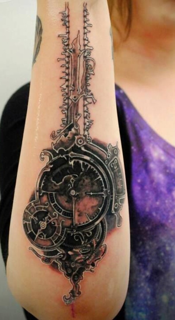 手臂上个性的怀表纹身