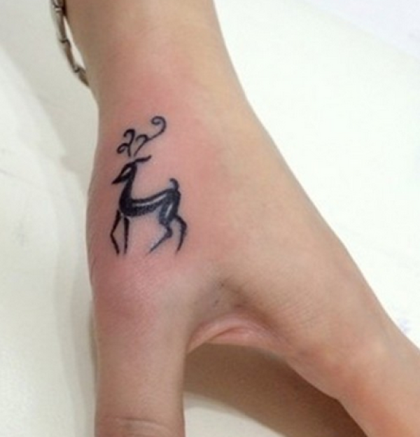 虎口上经典的小鹿纹身