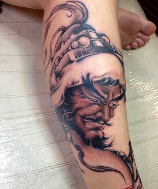 花腿纹身--一组大黑腿纹身图案作品欣赏