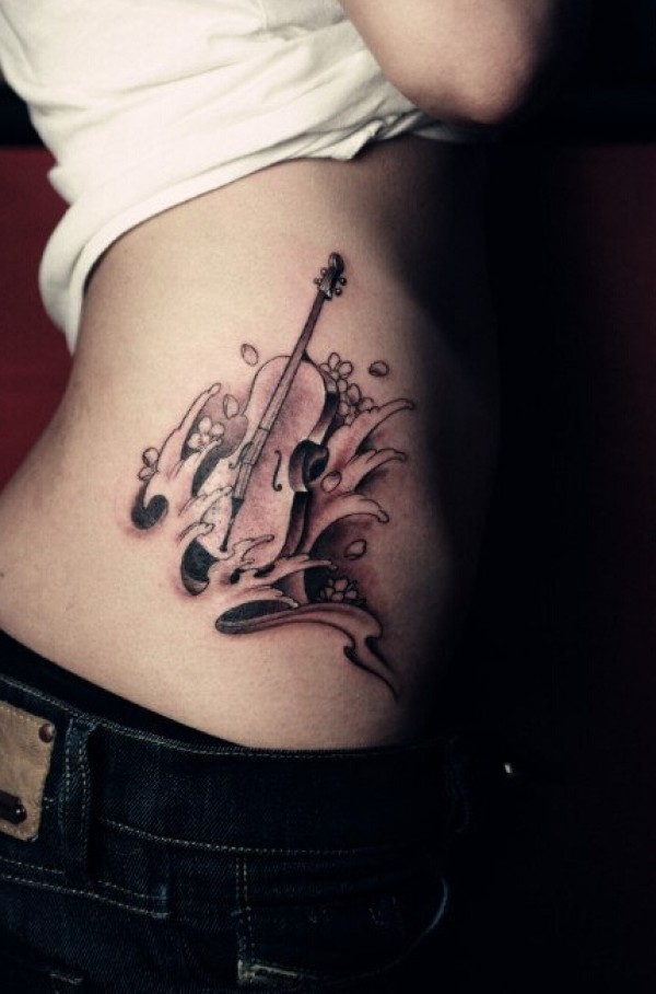 分享一款腰部时尚性感的蝶恋花纹身图案_腰部纹身图案大全_纹身图吧