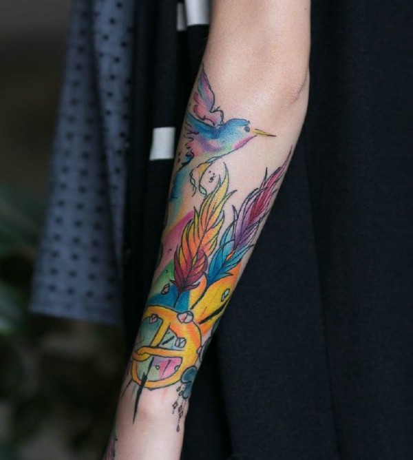 手臂一款彩色蘑菇纹身图案_臂部纹身图案大全_纹身图吧
