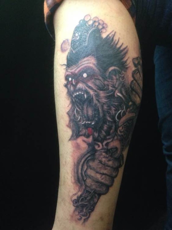 花腿纹身--一组大黑腿纹身图案作品欣赏