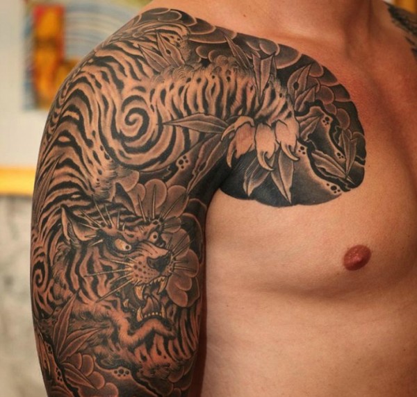 霸气半胛老虎纹身_动物纹身图案大全_纹身图吧