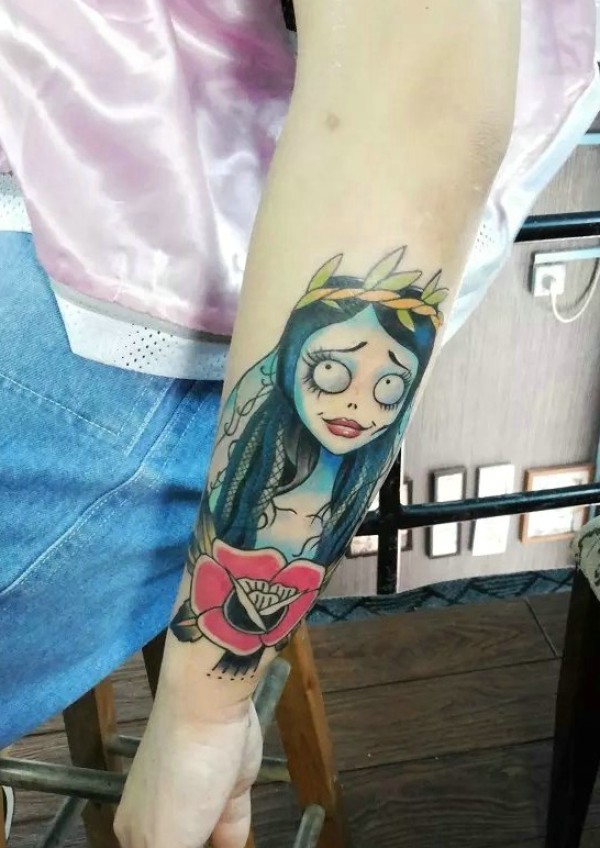 很有创意的彩色僵尸新娘手臂纹身