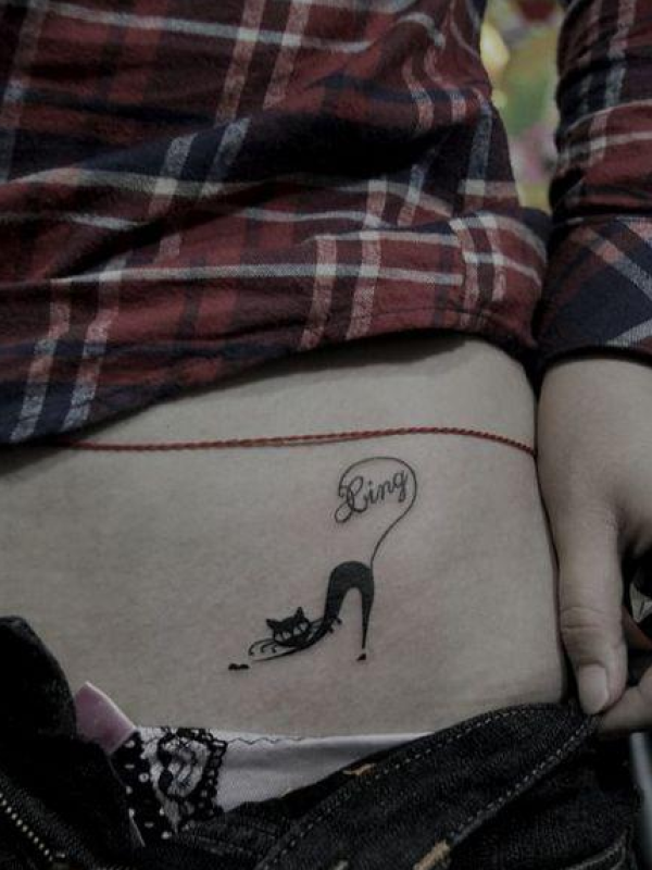 女生后腰纹身黑白灰风格抽象线条纹身图案