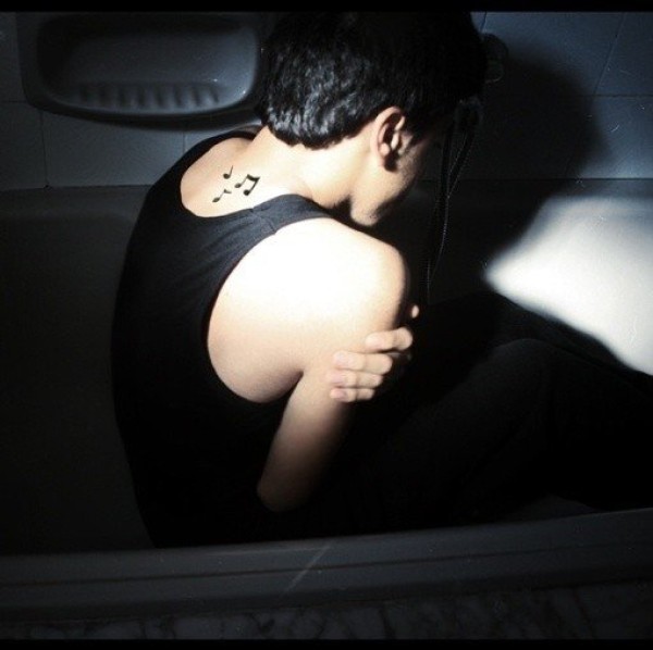 男士后颈音符纹身图案