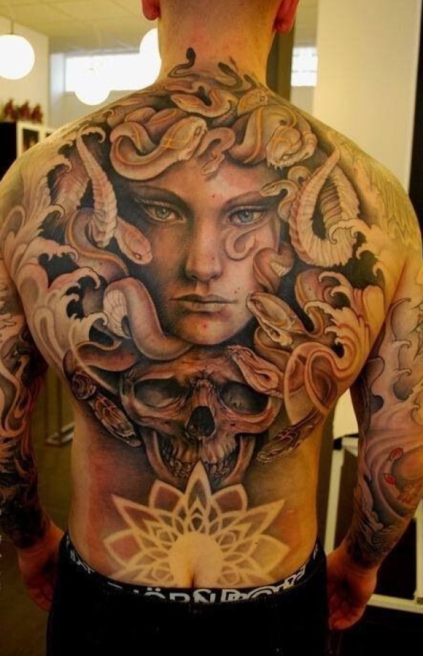男士大气的满背美杜莎纹身图案
