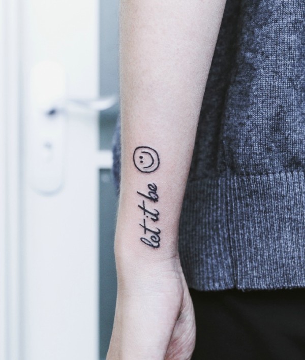 皙白的手臂有着简单明了的英文纹身