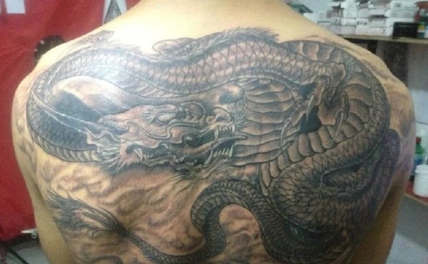 铺满半个背部的霸气邪龙纹身