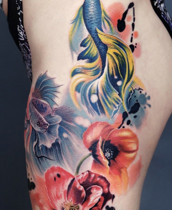 【泼墨刺青】近年来纹身界掀起一股泼墨风潮。
