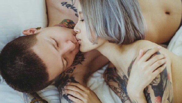 激情火热的情侣有着时尚纹身