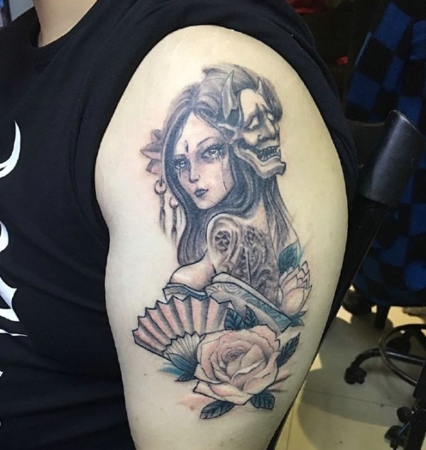 女性人物纹身图案 男生大臂纹身女性人物纹身图案