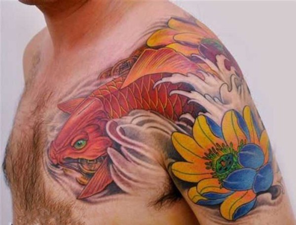 一组活力年轻派的鲤鱼纹身图案