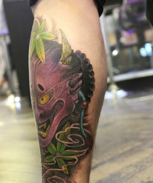 日式风格的传统花腿纹身作品欣赏