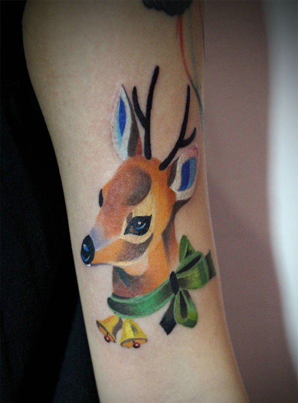 仿佛正在侧耳听着什么的灵动小鹿纹身