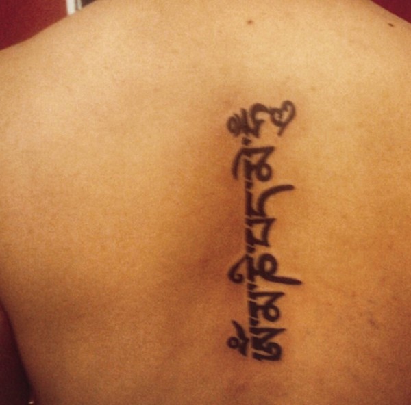 中年男士脊椎上的简单梵文纹身