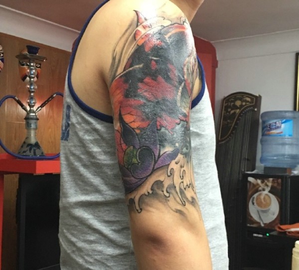 背心男士拥有帅气大臂鲤鱼纹身图片