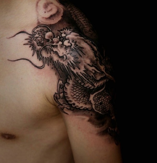龙纹身手稿_一组老传统黑灰龙手稿纹身图案