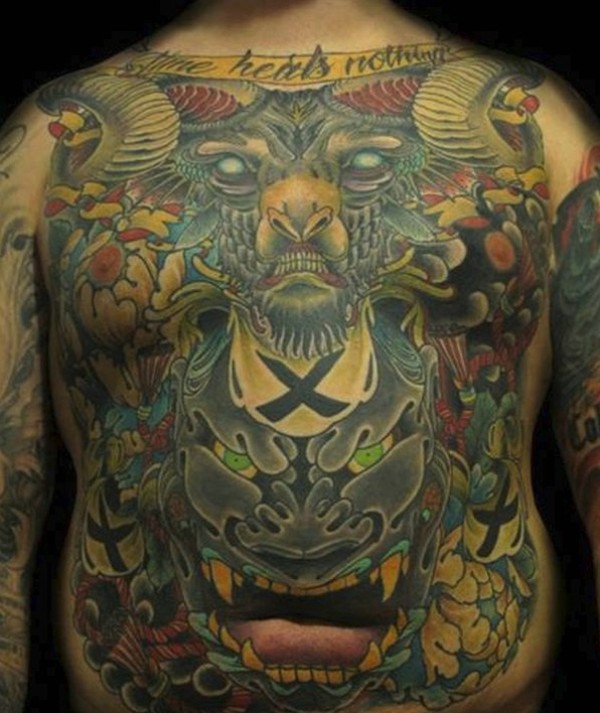 相当重口味的彩色满背图腾纹身图案
