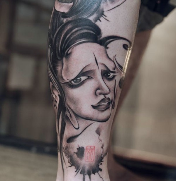 花腿纹身--一组大黑腿纹身图案作品欣赏