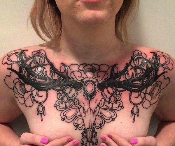 女性大花胸纹身_43张霸气漂亮的女性大花胸纹身图案作品
