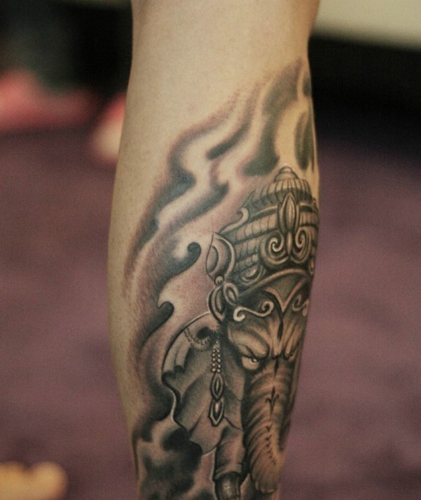 小腿上一款大象纹身图案_腿部纹身图案大全_纹身图吧