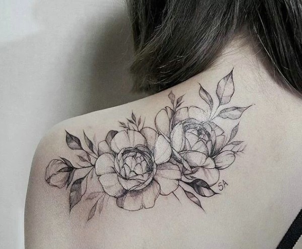 后肩唯美花藤英文图案图片_植物纹身图案大全_纹身图吧