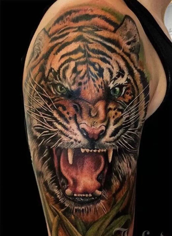 霸气半胛老虎纹身_动物纹身图案大全_纹身图吧