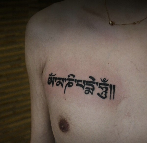 男士胸前个性简单梵文纹身图片