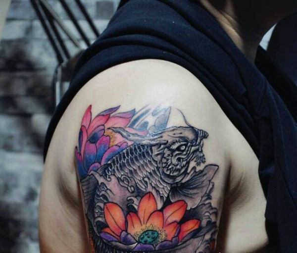 手臂莲花蛇纹身图案_臂部纹身图案大全_纹身图吧
